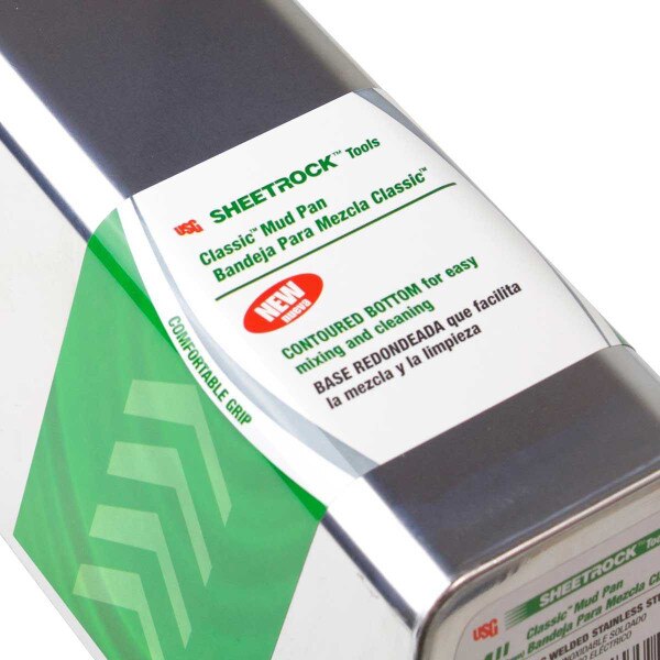 Sheetrock Drywall Mud Pans were designed and field-tested to exceed your demanding expectations. USG SHEETROCK™ Tools Classic™ Drywall Mud Pans are built with Stainless Steel for extra long life, and feature rounded bottom corners that make scooping your mud far easier than conventional pans.